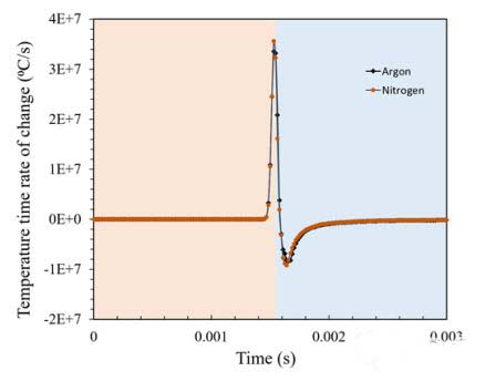1、氮氣氛沿著軌道引入略低的溫度和溫度梯度,同時冷卻速率高于氬氣氛。研究人員將此歸因于氮氣的較高導(dǎo)熱系數(shù)。