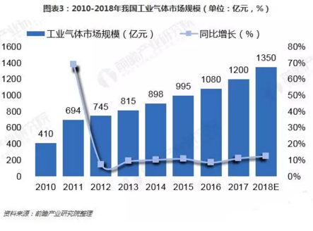 3、我國工業(yè)氣體行業(yè)持續(xù)快速發(fā)展