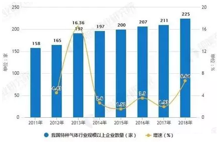中國特種氣體行業(yè)企業(yè)數(shù)量增長緩慢