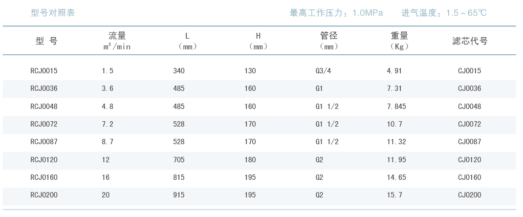 工作壓力:≤1.0MPa 進(jìn)氣溫度:1.5~65℃